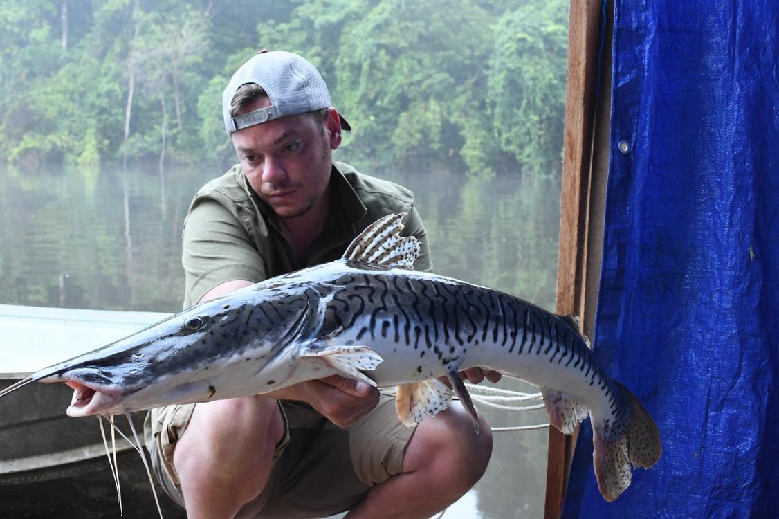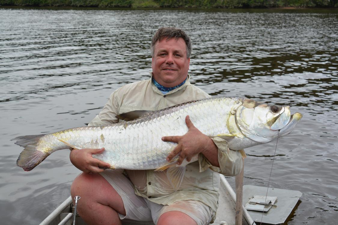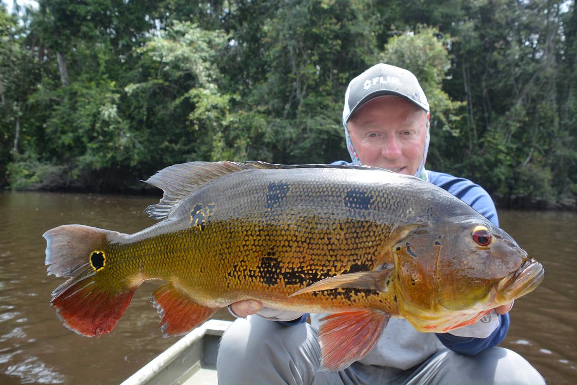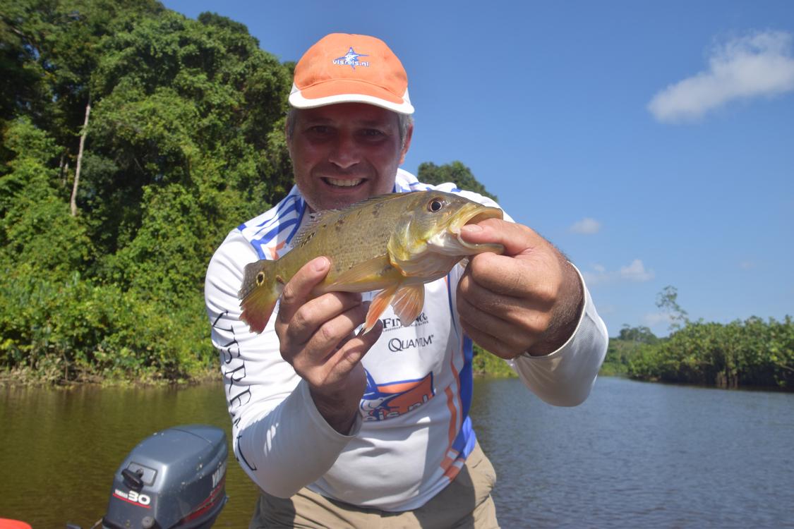 A large number of species of birds, reptiles and mammals inhabit these forests, as well as the coastal strip. It is therefore a feast for the eyes to stay here and encounter several of these species during your fishing trip. Some examples are the various monkeys, caimans and large numbers of birds. But not only above water there is an exuberant fauna. Also in the water there are mostly very large species: piraiba (also called Lau-Lau), tarpon, anjoemara (wolf fish), tiger catfish, electric eel, peacock bass, red tail, piranha, koebi etc. Actually too many to mention but the focus for this fishing trip is on the piraiba, tarpon and the bycatch of the smaller species. This is the ultimate fishing in Suriname.