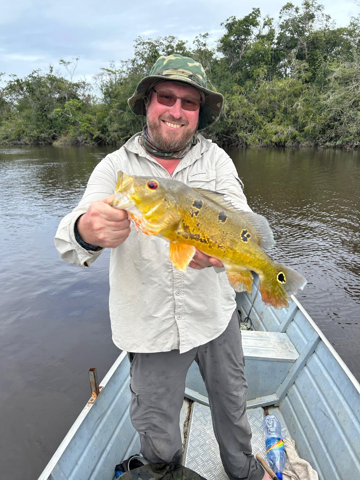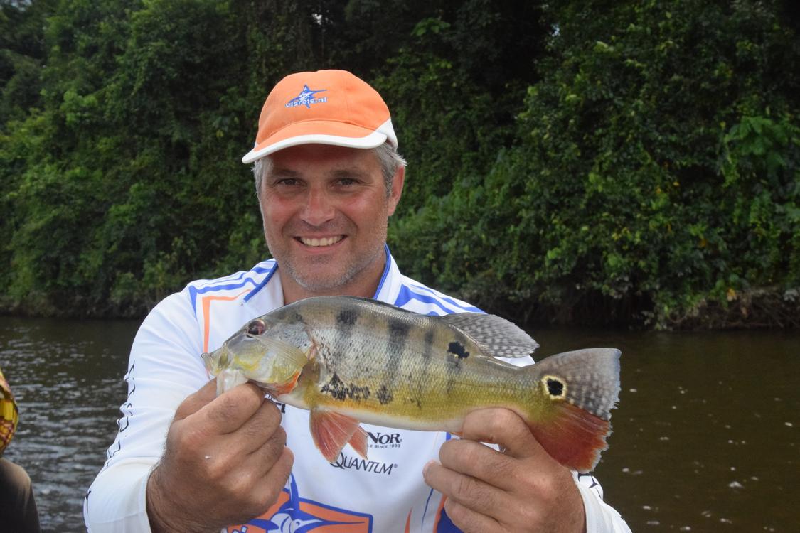 In addition to static fishing for the large species during the current period of the tidal changes, in the quiet period you can go out with the 15 foot aluminium fishing boat with 15 HP engine that is present at each fishing camp. This boat is used in case of a strike of a large fish in order to be able to sail behind it and drill the fish well. But in quiet times they are perfect for fishing for 'smaller' species. Use a medium spinning rod of 40 to 80 grams and different types of lures. Think of poppers, lures, crankbaits, blinkers, shads, jerks and so on. But also a single hook with a float and piece of fish is very effective. Species such as piranha, catfish, peacock, electric eel, red tail etc give this set a serious fight and super sport.