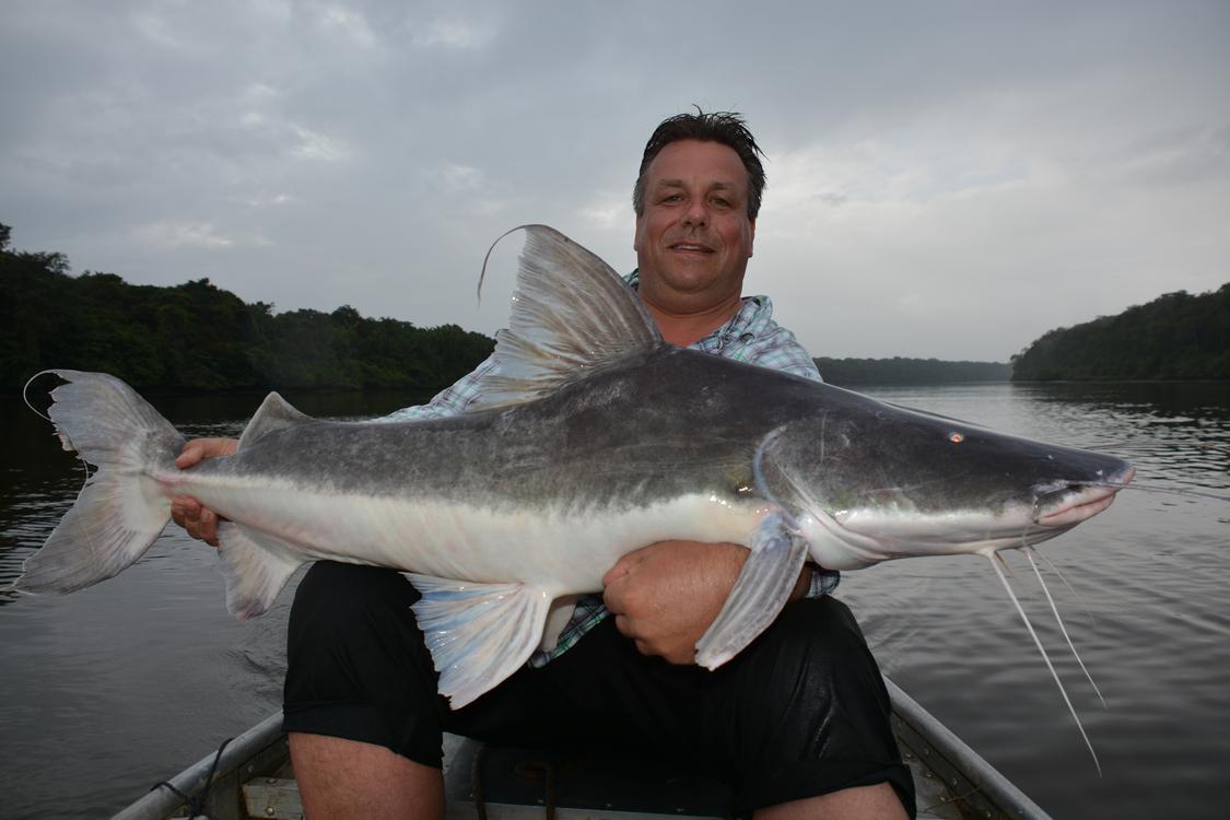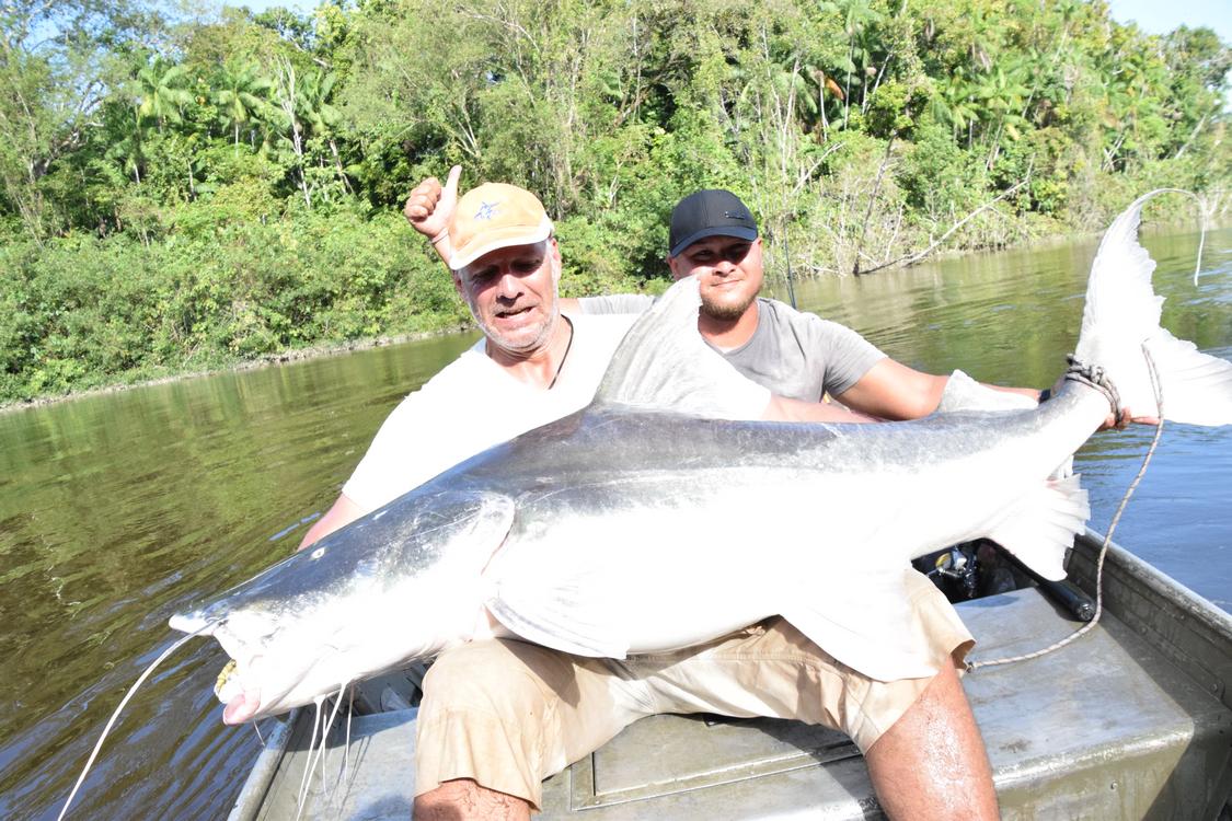 A large number of species of birds, reptiles and mammals inhabit these forests, as well as the coastal strip. It is therefore a feast for the eyes to stay here and encounter several of these species during your fishing trip. Some examples are the various monkeys, caimans and large numbers of birds. But not only above water there is an exuberant fauna. Also in the water there are mostly very large species: piraiba (also called Lau-Lau), tarpon, anjoemara (wolf fish), tiger catfish, electric eel, peacock bass, red tail, piranha, koebi etc. Actually too many to mention but the focus for this fishing trip is on the piraiba, tarpon and the bycatch of the smaller species. This is the ultimate fishing in Suriname.