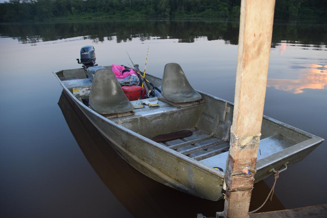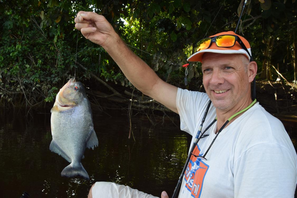 In addition to static fishing for the large species during the current period of the tidal changes, in the quiet period you can go out with the 15 foot aluminium fishing boat with 15 HP engine that is present at each fishing camp. This boat is used in case of a strike of a large fish in order to be able to sail behind it and drill the fish well. But in quiet times they are perfect for fishing for 'smaller' species. Use a medium spinning rod of 40 to 80 grams and different types of lures. Think of poppers, lures, crankbaits, blinkers, shads, jerks and so on. But also a single hook with a float and piece of fish is very effective. Species such as piranha, catfish, peacock, electric eel, red tail etc give this set a serious fight and super sport.