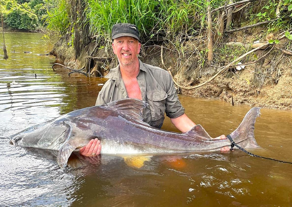 A large number of species of birds, reptiles and mammals inhabit these forests, as well as the coastal strip. It is therefore a feast for the eyes to stay here and encounter several of these species during your fishing trip. Some examples are the various monkeys, caimans and large numbers of birds. But not only above water there is an exuberant fauna. Also in the water there are mostly very large species: piraiba (also called Lau-Lau), tarpon, anjoemara (wolf fish), tiger catfish, electric eel, peacock bass, red tail, piranha, koebi etc. Actually too many to mention but the focus for this fishing trip is on the piraiba, tarpon and the bycatch of the smaller species. This is the ultimate fishing in Suriname.