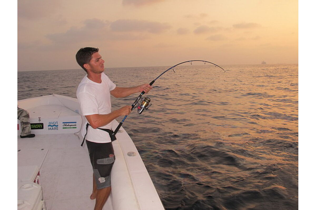 The season for fishing literally runs all year round here. From April to October is the longtail and yellowfin tuna season. During the rest of the year dorado, amberjack, rainbow runner, sailfish and barracuda are present continuously and in good numbers. With an average temperature in winter around 24° C and in summer around 40° C it is a good place to be. But drink a lot of water on the boat between fishing and catching is important. Sunglasses, sun lotion and cap are a necessity here.